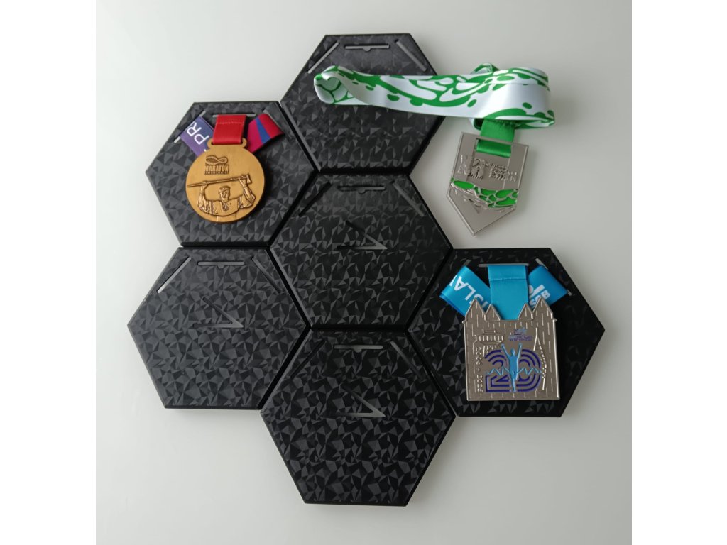 Originálny držiak na medaile, ktorý krásne vynikne v každej izbe či športovej šatni. 💪